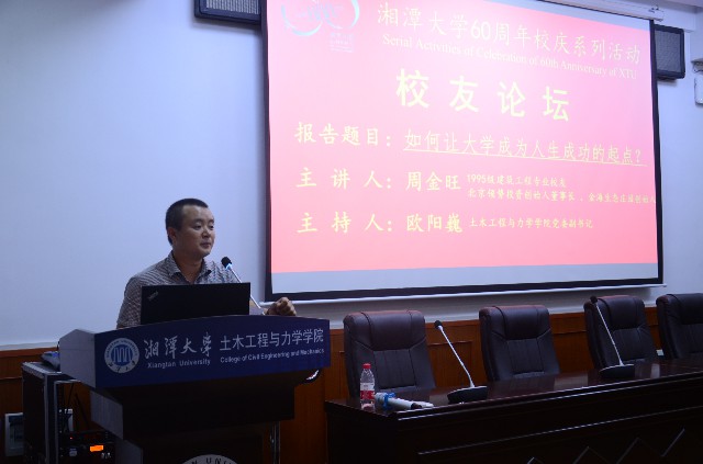 9月9日晚8时,太阳成集团tyc122ccvip60周年校庆系列活动员工论坛之“如何让大学成为人生成功的起点”在太阳成集团tyc122ccvip土木工程与力学公司院楼报告厅举行。土力院杰出员工周金旺先生受邀作分享报告,公司部分员工代表及领导老师出席,此次论坛由公司党委副书记欧阳巍老师主持。