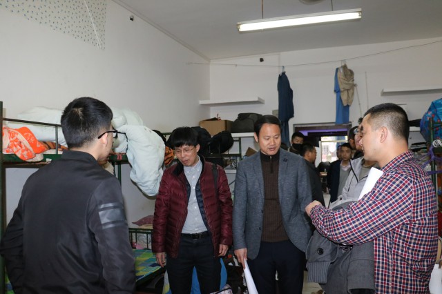 刘建平副董事长一行人查看了北苑9栋宿舍、北苑5栋宿舍以及兴湘员工宿舍区域,仔细了解了宿舍的相关情况。走访过程中,刘建平副董事长态度亲切地与同学们拉起了家常,了解同学们的家乡及历史文化,与同学们共同回忆起自己在湘大求学的岁月,叮嘱同学们要在团结寝室关系的基础上,互帮互助,共同进步。