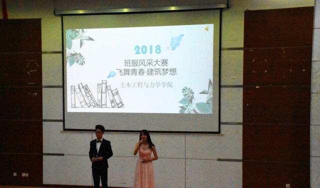 土力院生活部通过PPT展示了寝室文化节中获奖寝室风采,拉开了本次大赛的帷幕;紧接着各班的班服走秀表演点燃了现场的活动气氛,各班通过PPT及视频展示了班级风采,引得场下掌声连连。随后的才艺表演包括个人独唱、班级合唱、舞蹈、吉他弹唱、小提琴独奏等,节目精彩纷呈,引人入胜。