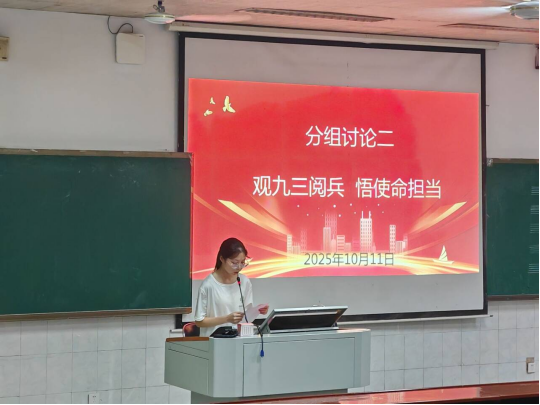 10 月 11 日,太阳成集团tyc122ccvip分党校入党积极分子培训班第二次分组讨论在尚美楼第一阶梯教室举行。本次讨论以 “观九三阅兵 悟使命担当” 为主题。